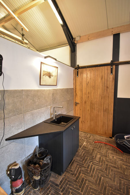 Pour ce projet nous nous sommes rendus chez notre client afin de créer une sellerie sur mesure. Nous avons conçu un meuble laqué, équipé d'un plan de travail en granit durable, spécialement destiné au nettoyage et au rangement de l'équipement. Cette combinaison de matériaux haut de gamme assure non seulement une grande fonctionnalité, mais crée également un intérieur esthétique et durable, parfaitement adapté à l'environnement des écuries.