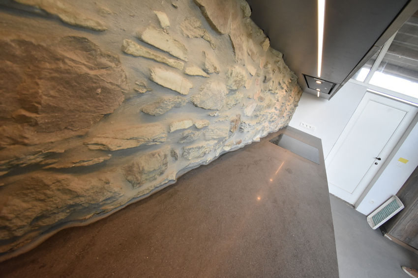 Dans cette charmante maison historique des Ardennes, nous avons créé une cuisine en préservant le mur en pierre authentique et irrégulier. Grâce à une personnalisation précise, nous avons parfaitement aligné les meubles hauts avec hotte avec les meubles bas sans endommager le mur. Le plan de travail a été soigneusement ajusté pour s'adapter parfaitement à la forme unique du mur de pierre. La cuisine, équipée d'un four de 90 cm et de portes en bois d'échafaudage, allie robustesse et charme authentique.